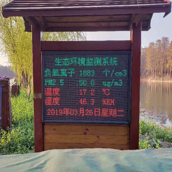 景區(qū)名稱:中國(guó)·李中水上森林公園 地址:泰州市興化市李中鎮(zhèn)蘇宋村 配置:景區(qū)通用四參數(shù),采用“一對(duì)二”無(wú)線傳輸方案,1套監(jiān)測(cè)設(shè)備同時(shí)遠(yuǎn)程發(fā)布數(shù)據(jù)到兩塊LED大屏顯示