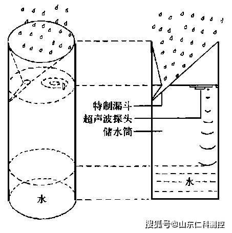 根據(jù)超聲波測(cè)距原理,利用高精度超聲波探測(cè)雨量桶內(nèi)水面高度的變化,由承雨器、特制漏斗、超聲波測(cè)距探頭、換桶控制開關(guān)、外接電纜、儲(chǔ)水桶等上、下兩部分組成,當(dāng)有液態(tài)降水時(shí),雨水落入承雨器內(nèi),經(jīng)特制漏斗沿儲(chǔ)水桶壁流入桶內(nèi),可避免因水建起水波而影響精度。根據(jù)超聲波測(cè)距原理,選用高精度的超聲波探頭,對(duì)雨量器內(nèi)的水面高度進(jìn)行測(cè)定,并轉(zhuǎn)換成電信號(hào)輸出。超聲波探頭每分鐘對(duì)液面進(jìn)行一次觀測(cè)并計(jì)數(shù),數(shù)據(jù)經(jīng)采集器傳入主機(jī),計(jì)算機(jī)程序?qū)邓涗涀詣?dòng)分析可挑出5,10……1440分鐘供15個(gè)時(shí)段的將數(shù)量。