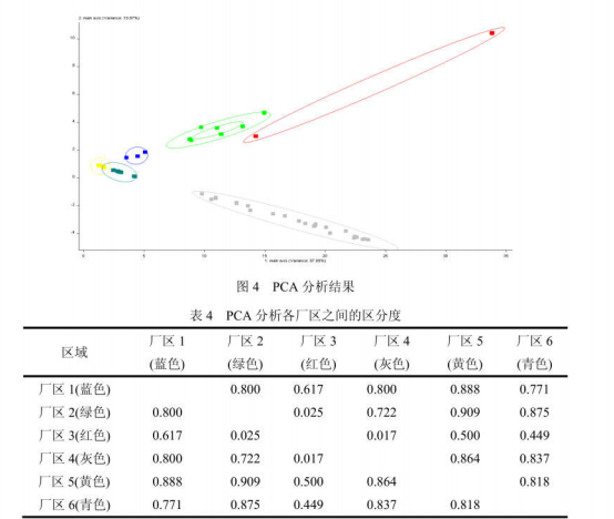 本文基于典型惡臭污染源樣品的電子鼻分析和人工嗅辨結果,利用偏最小二乘法(PLS)建立了電子鼻臭氣濃度反演曲線,并結合主成分分析方法(PCA分析),初步建立了某工業區主要惡臭排放企業的特征指紋庫。