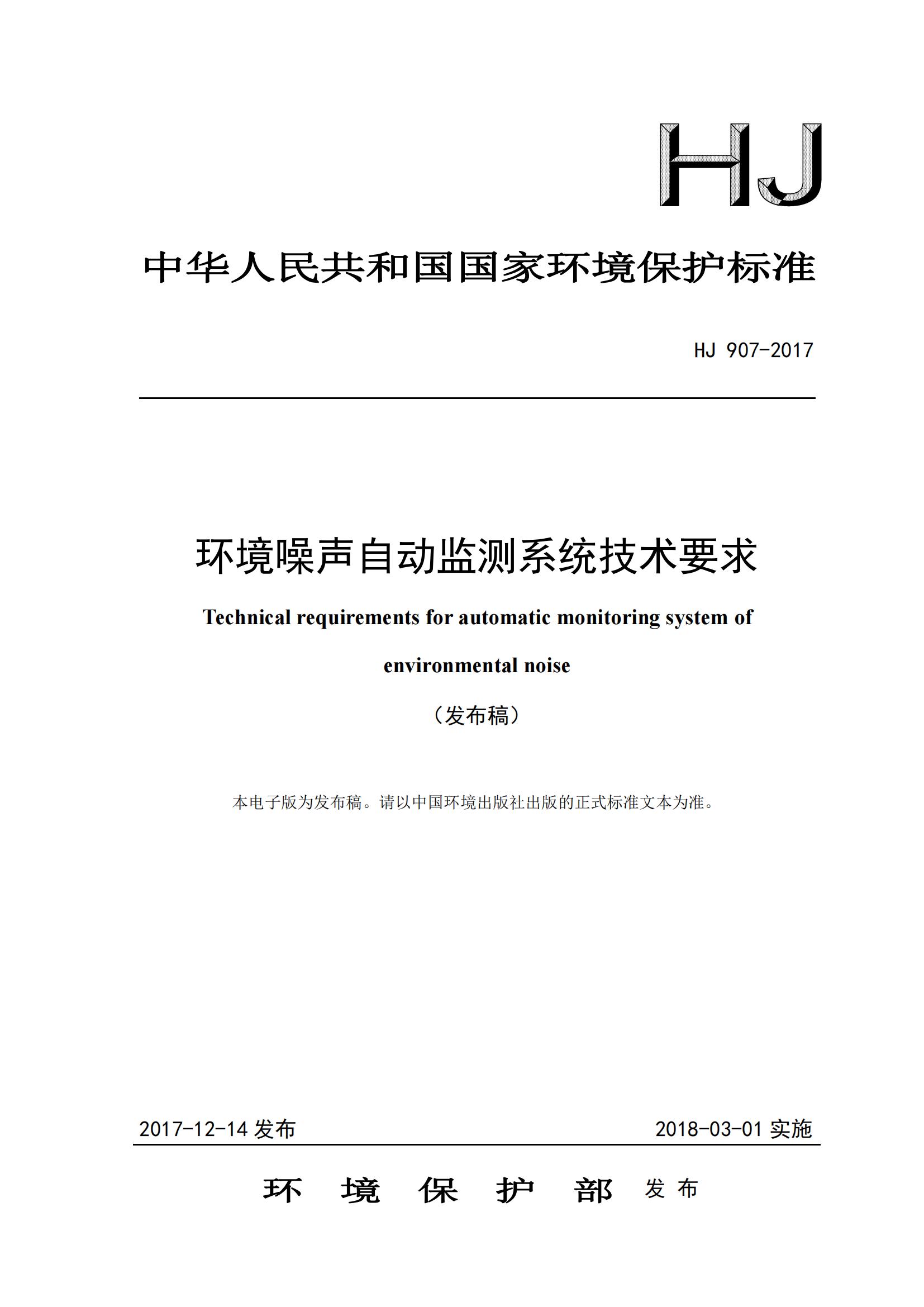 HJ907-2017環境噪聲自動檢測系統技術要求
