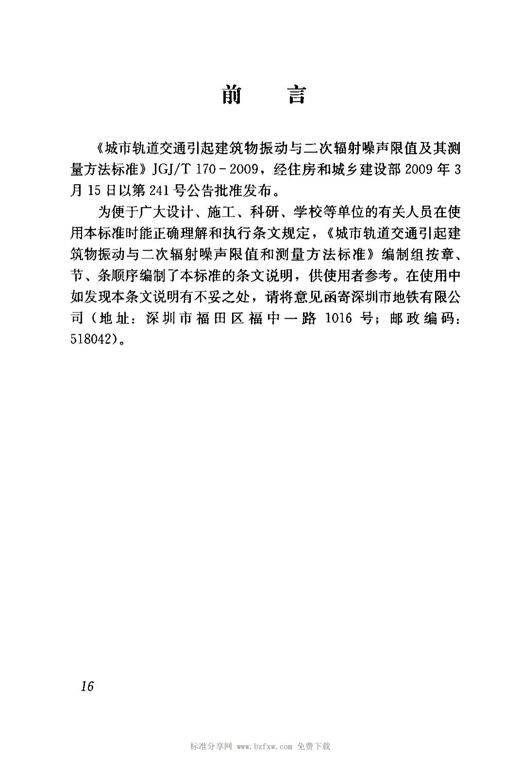 JGJT170-2009 城市軌道交通引起建筑物振動與二次輻射噪聲限值及其測量方法標準