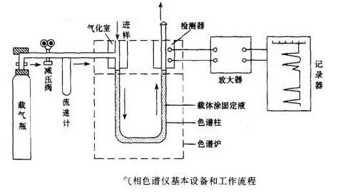 組成:氣路系統(tǒng)、進樣系統(tǒng)、分離系統(tǒng)、溫控系統(tǒng)、檢測記錄系統(tǒng)。