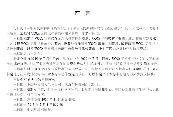 揮發(fā)性有機(jī)物無(wú)組織排放控制標(biāo)準(zhǔn)