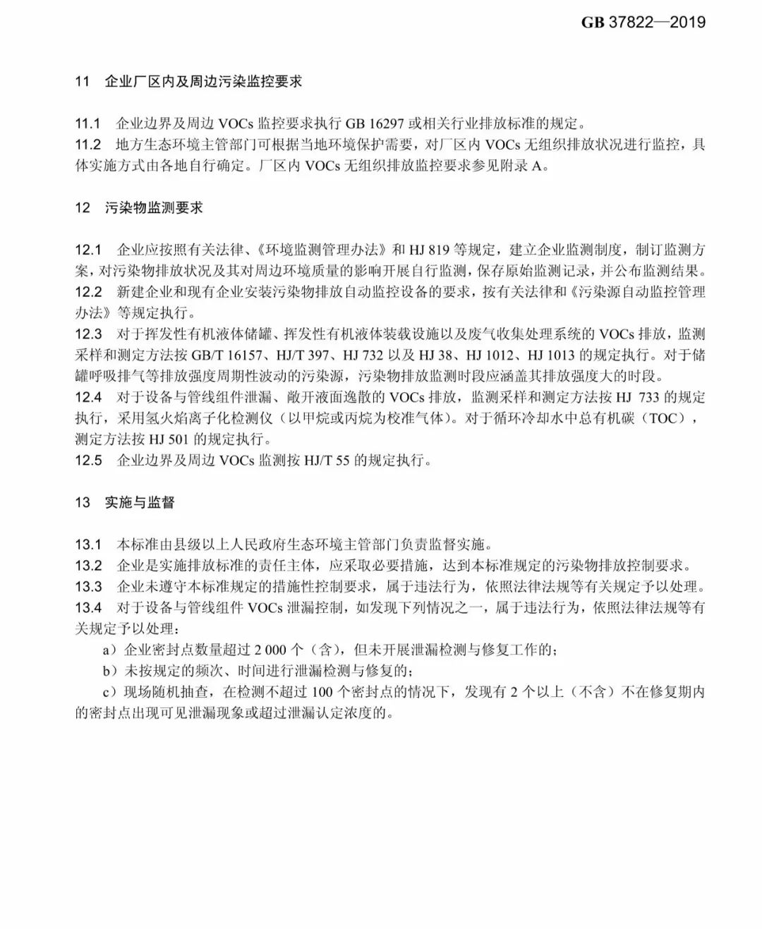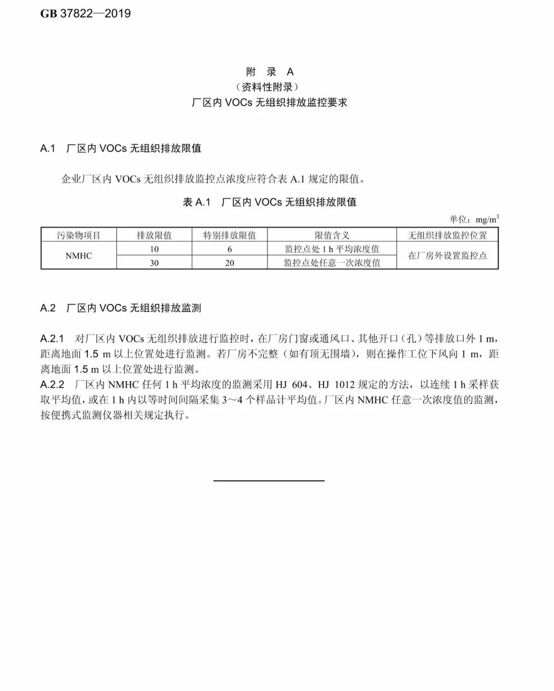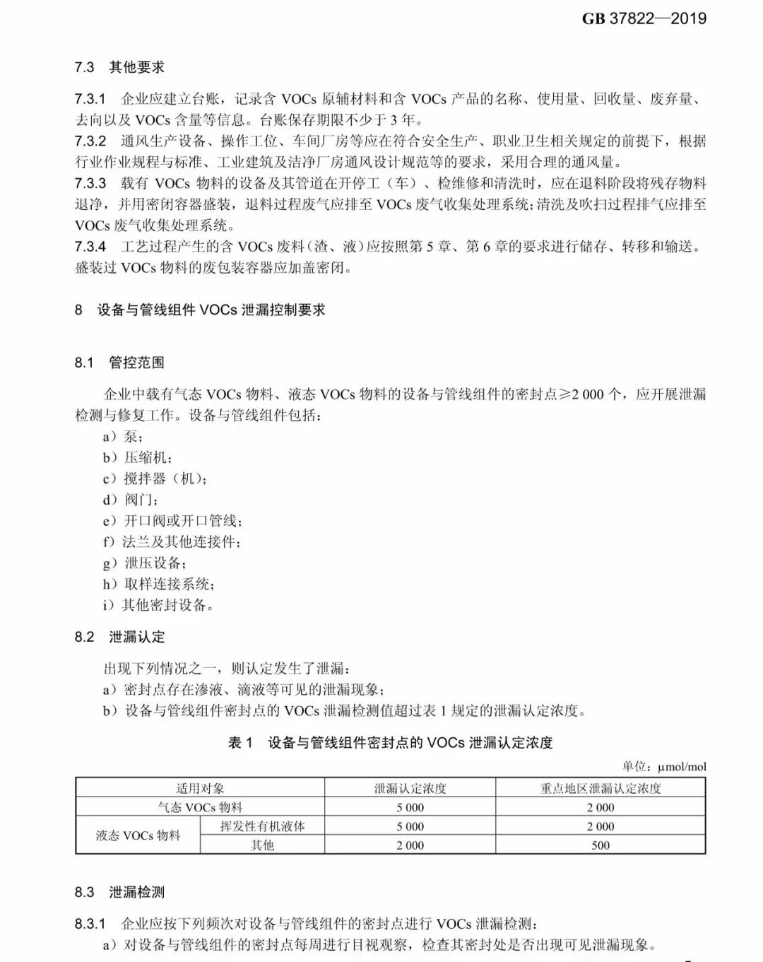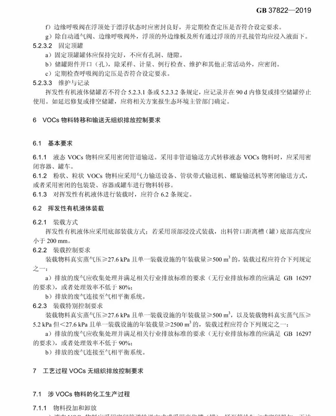 標(biāo)準(zhǔn)規(guī)定了 VOCs物料儲(chǔ)存無(wú)組織排放控制要求、VOCs物料轉(zhuǎn)移和輸送無(wú)組織排放控制要求、工藝過(guò)程 VOCs無(wú)組織排放控制要求、設(shè)備與管線(xiàn)組件 VOCs泄漏控制要求、敞開(kāi)液面 VOCs無(wú)組織排放控制要求,以及 VOCs無(wú)組織排放廢氣收集處理系統(tǒng)要求、企業(yè)廠(chǎng)區(qū)內(nèi)及周邊污染監(jiān)控要求。