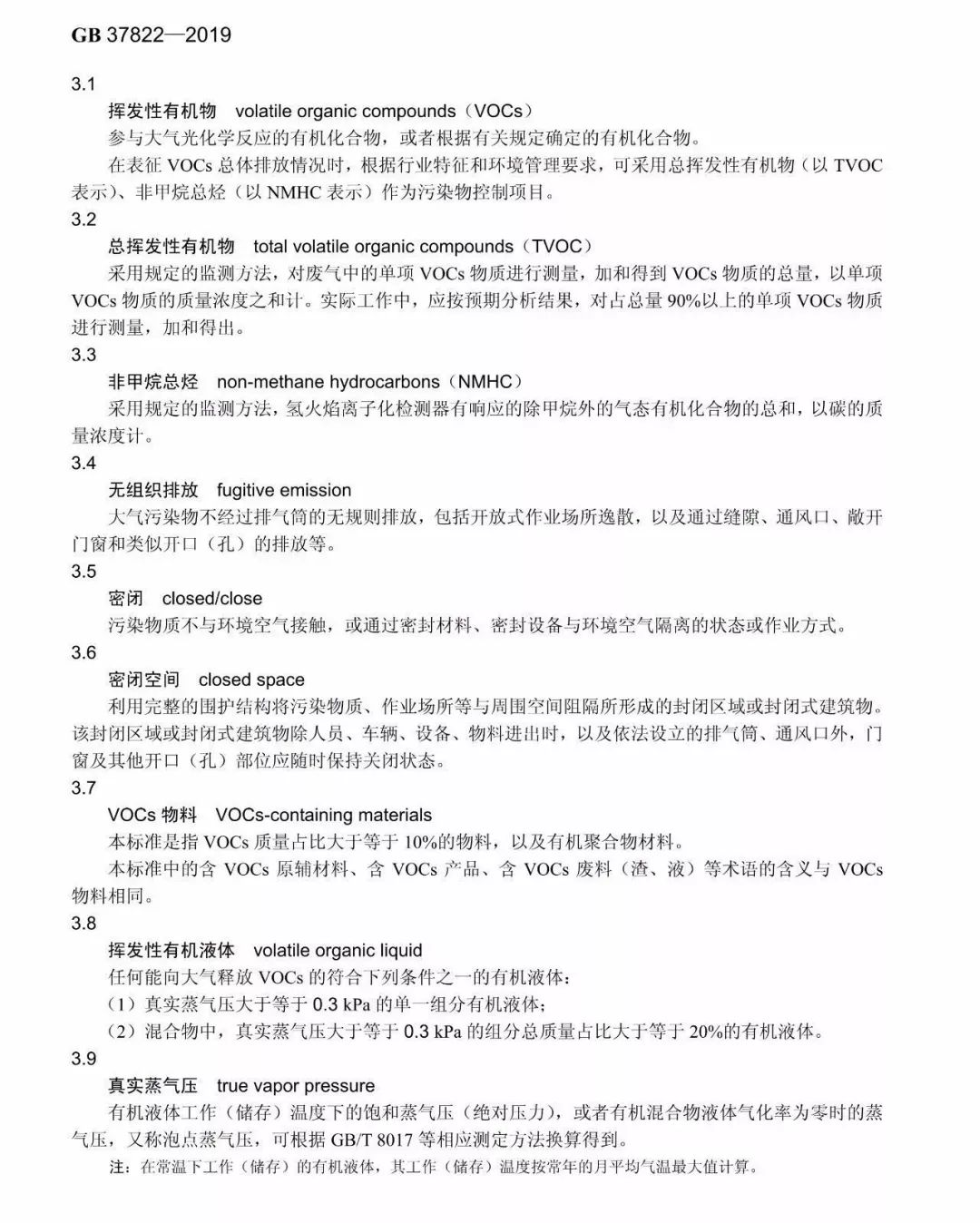 標(biāo)準(zhǔn)中的揮發(fā)性有機(jī)物(VOCs)是指參與大氣光化學(xué)反應(yīng)的有機(jī)化合物、或者根據(jù)有關(guān)規(guī)定確定的有機(jī)化合物。在表征VOCs排放情況時(shí),根據(jù)行業(yè)特征和環(huán)境管理要求,可采用總揮發(fā)性有機(jī)物(TVOCs)、非甲烷總烴(NMHC)作為污染物控制標(biāo)準(zhǔn)。