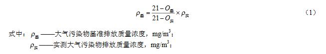 4.6 進入VOCs燃燒(焚燒、氧化)裝置的廢氣需要補充空氣進行燃燒、氧化反應的,排氣筒中實測大氣污染物排放濃度,應按式(1)換算為基準含氧量為3%的大氣污染物基準排放濃度。利用鍋爐、工業爐窯、固廢焚燒爐焚燒處理有機廢氣的,煙氣基準含氧量按其排放標準規定執行。