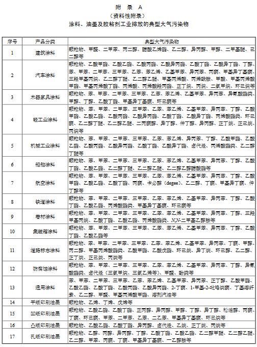 本標準規定了涂料、油墨及膠粘劑工業大氣污染物排放控制要求、監測和監督管理要求。