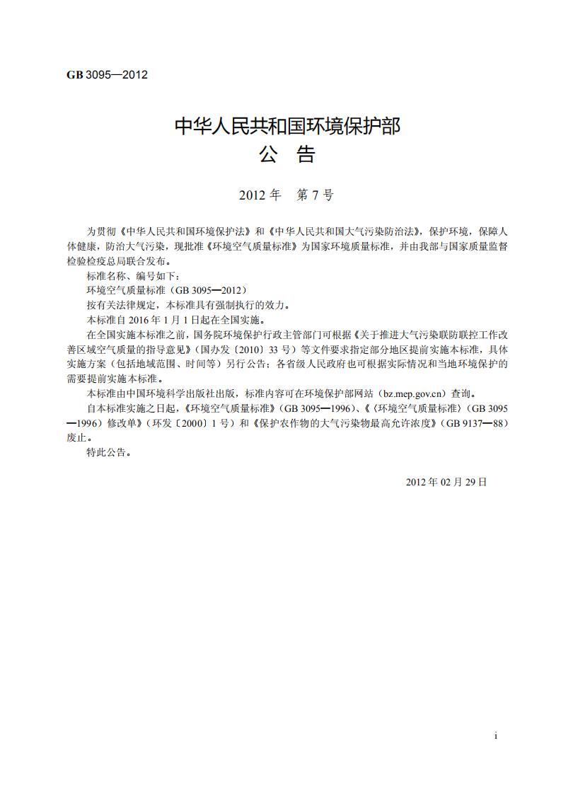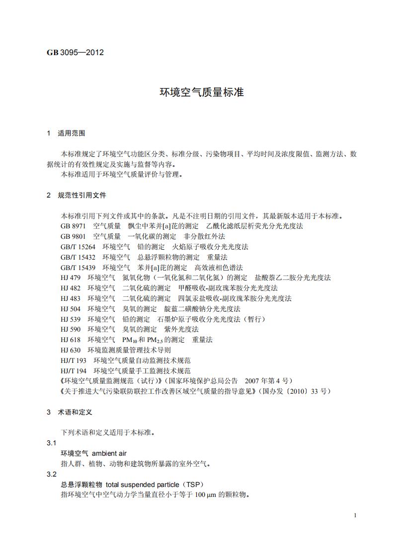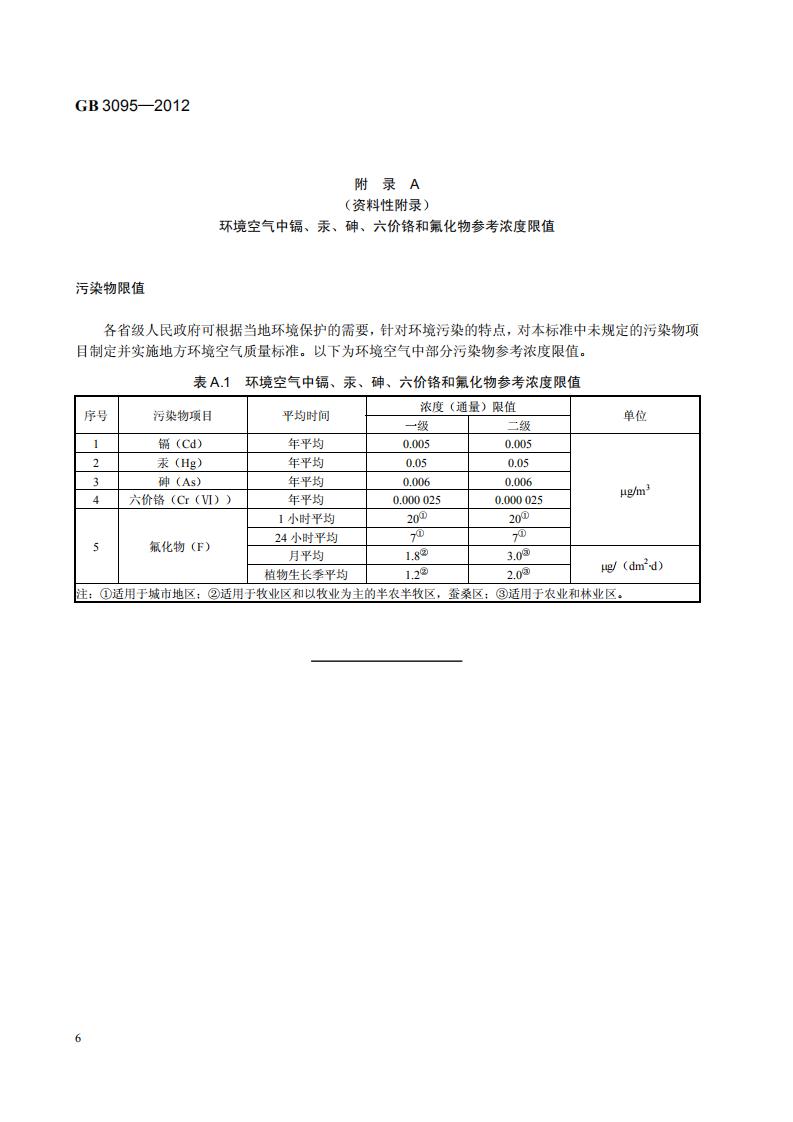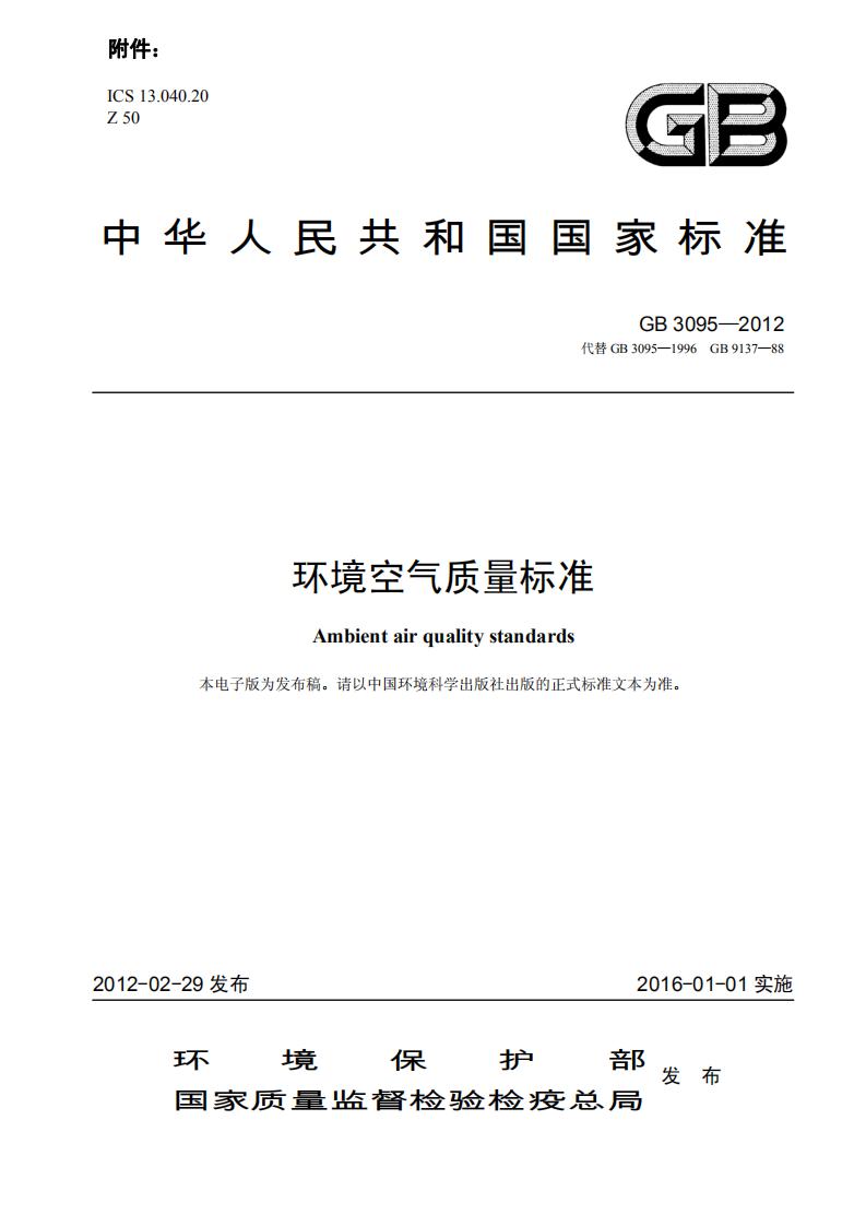 《環境空氣質量標準》(GB 3095-2012)