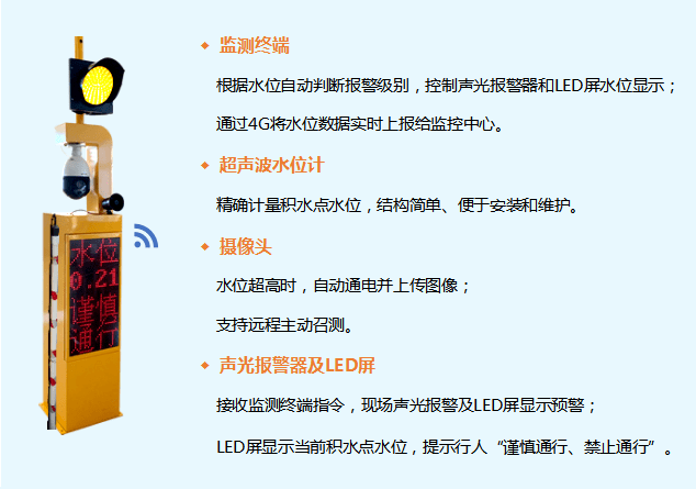 ◆ 集水位、視頻數據監測、采集、上傳,LED屏提示、聲光報警等功能于一體