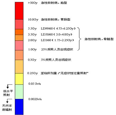 輻射對(duì)人的效應(yīng)有兩個(gè)顯著的特點(diǎn):很低的吸收能量可以造成很嚴(yán)重的傷害;短時(shí)間的作用可以造成非常長(zhǎng)久的影響。