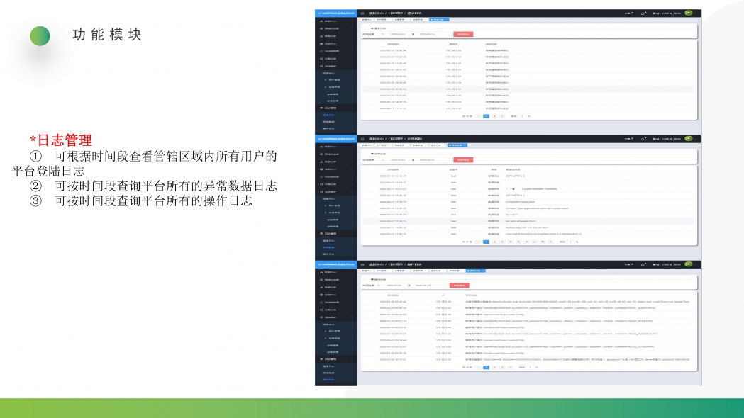 ① 可根據時間段查看管轄區域內所有用戶的平臺登陸日志