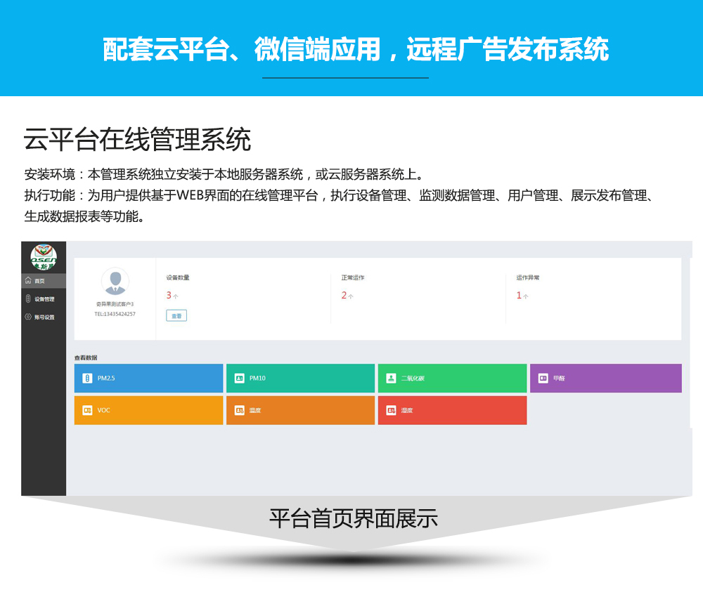 室內(nèi)專用環(huán)境檢 監(jiān)測系統(tǒng)終端是一款專門針對家居及公共場所室內(nèi)環(huán)境而定制全面24小時(shí)實(shí)時(shí)在線監(jiān)測的系統(tǒng),可以在手機(jī)端、電腦端遠(yuǎn)程查看相關(guān)監(jiān)測數(shù)據(jù)。