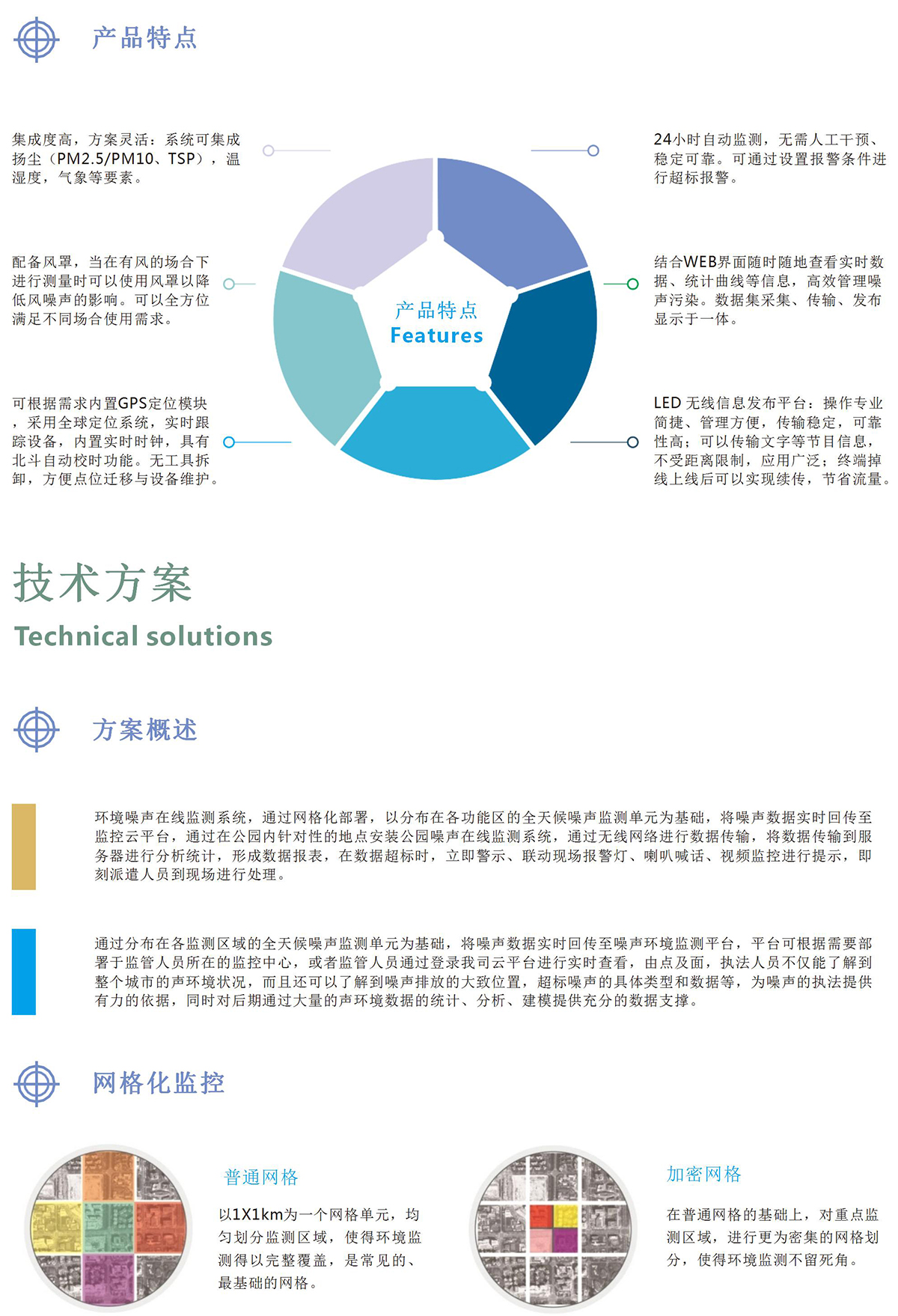 噪聲在線監測系統,符合2級聲級計標準,通過物聯網 技術與現場端儀器儀表進行互聯互通,完成對環境噪聲數據實時采 集,并對采集數據統計分析,計算噪聲值。是一種簡易型的戶外噪聲自動監測系統,它由戶外監測箱、噪聲傳 感器、數據采集統計分析軟件、GPRS無線傳輸模塊、服務器云平 臺軟件、微信客戶端等部分組成。計測量范圍大、功能強穩定性好。應用廣泛適用于城市公園環境噪 聲自動監測、噪聲污染源在線監測,噪聲數據自動采集、傳輸。它 具有全天候監測、無需人值守等特點。