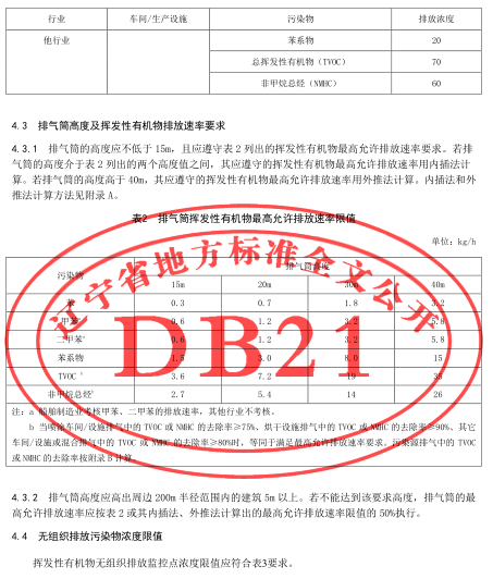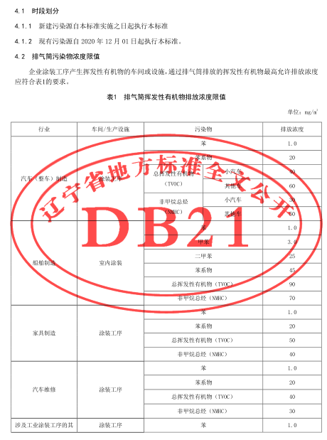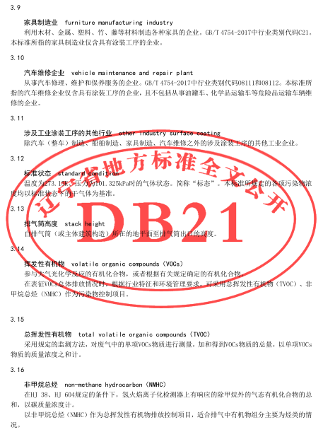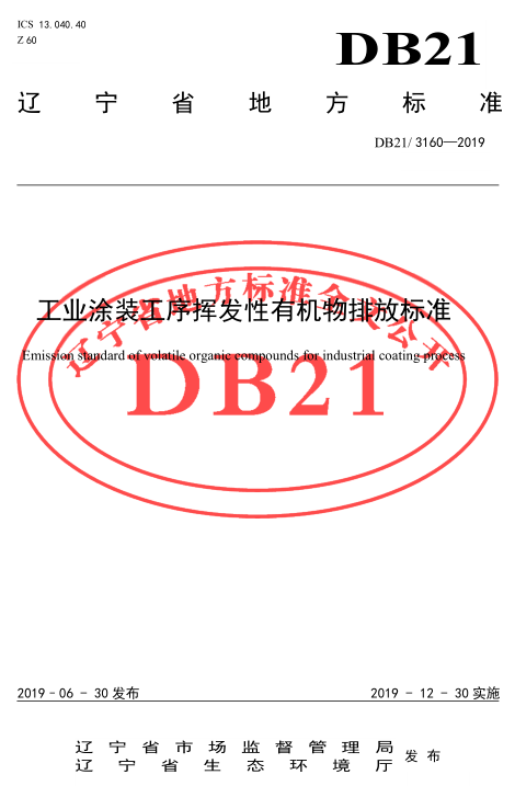 遼寧:工業(yè)涂裝工序揮發(fā)性有機(jī)物排放標(biāo)準(zhǔn)(DB21/3160-2019)