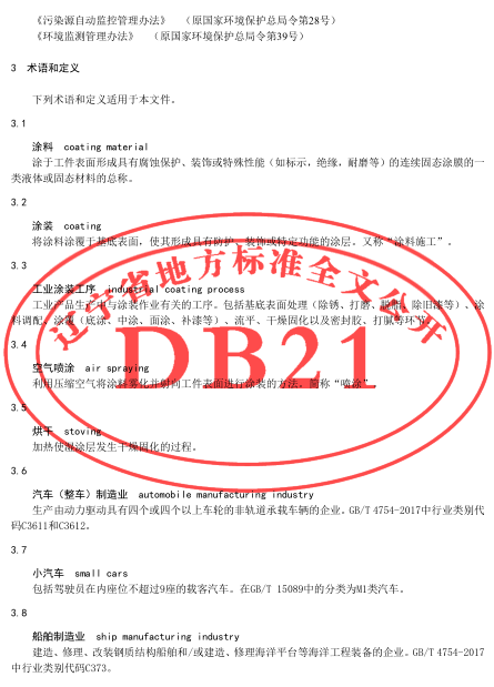 工業(yè)涂裝工序揮發(fā)性有機(jī)物排放標(biāo)準(zhǔn)(DB21