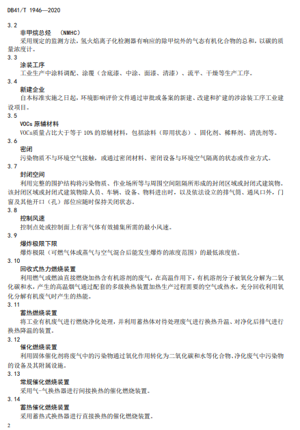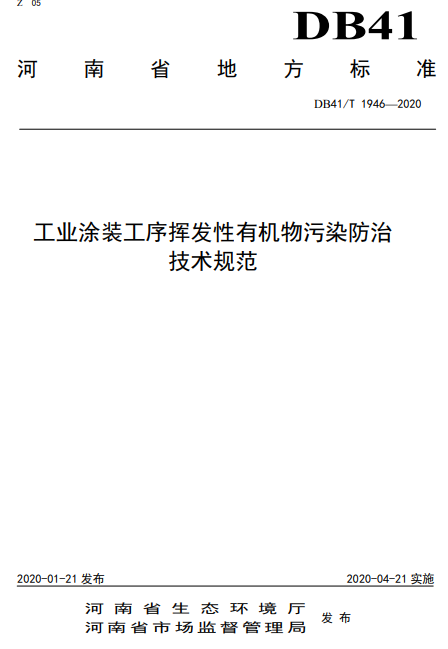 河南省工業涂裝工序揮發性有機物VOCS排放標準