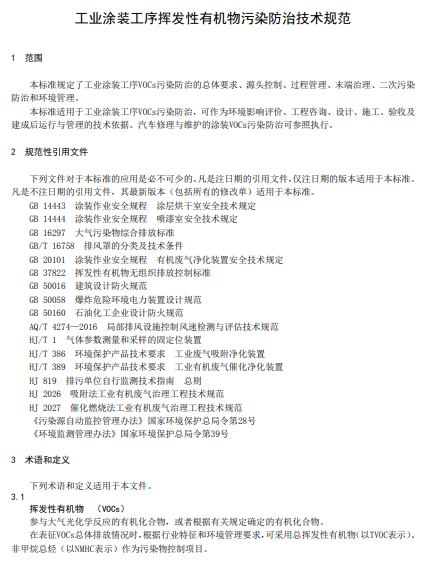 河南:工業涂裝工序揮發性有機物污染VOCs防治技術規范
